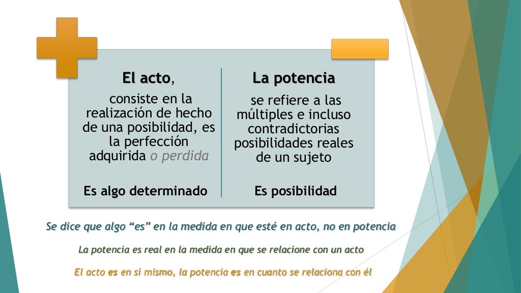 La teoria fundamental: acto y potencia. por JM07/12/2011. Por su importancia central en la filosofía escolástica, y objetivamente, dentro de la filosofía en general, queremos explicar brevemente, a modo de esbozo incompleto, dados los límites de un "blog", la teoría aristotélica del acto y la potencia. El cambio puede ser sustancial o.