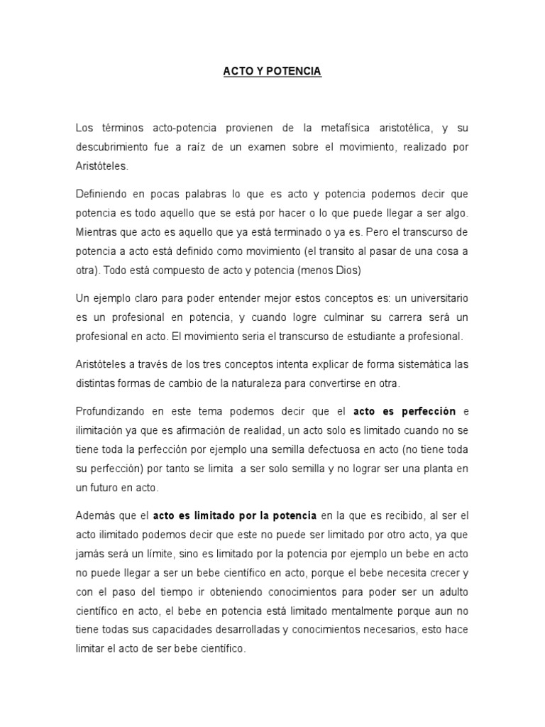 (DOC) ACTO Y POTENCIA SEGÚN EL PENSAMIENTO DE ARISTOTELES Paula Escobar Academia.edu
