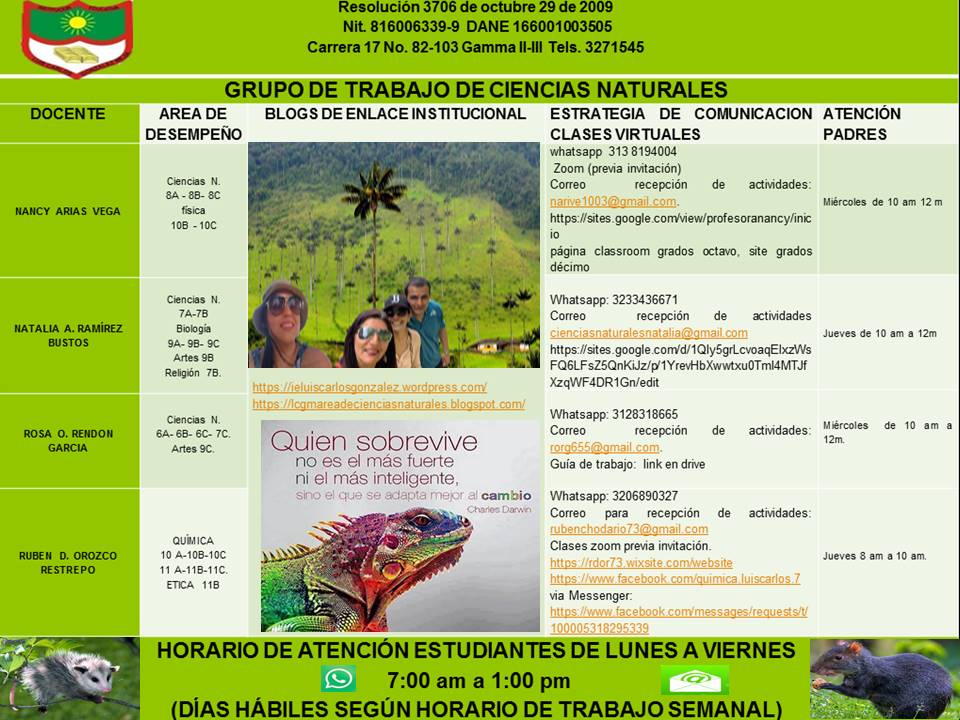 LCGM ÁREA DE CIENCIAS NATURALES Y EDUCACIÓN AMBIENTAL INFORMACIÓN AREA DE CIENCIAS NATURALES
