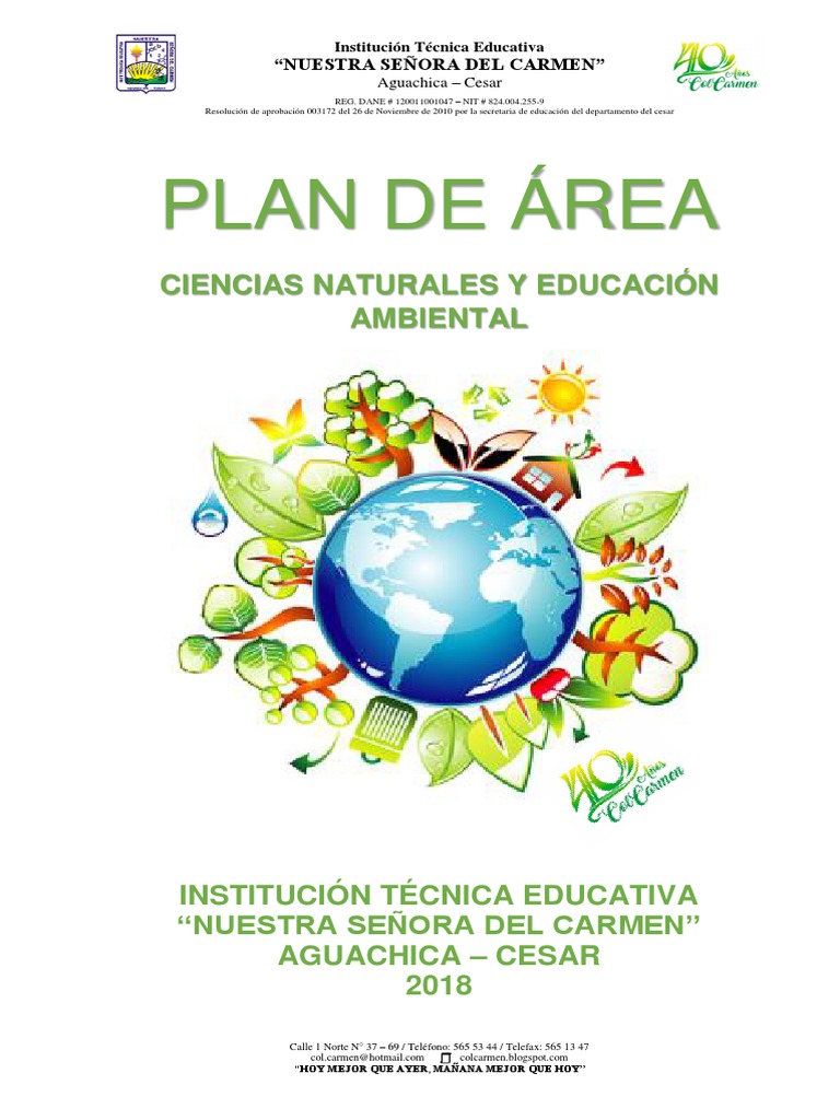 Marco técnico-leg al del área de Ciencias Naturales y Educación Ambiental. 17. PLAN DE ÁREA DE CIENCIAS NATURALE S Y EDUCACIÓN AMBIENT AL. Tal como se contempla en los artículos 67, 70y 79de.