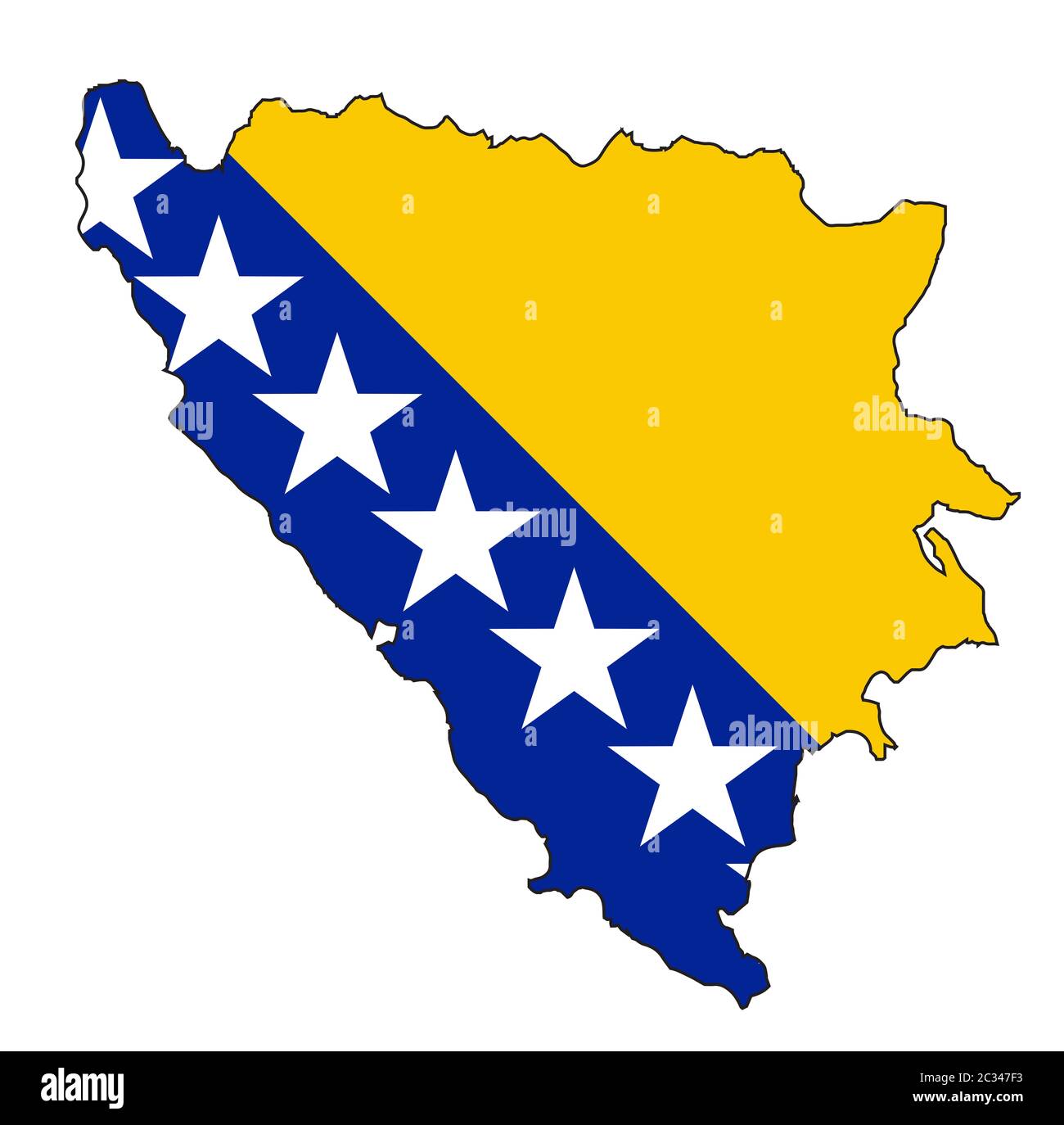 Esquema aislado mapa de Bosnia y Herzegovina con bandera nacional sobre un fondo blanco