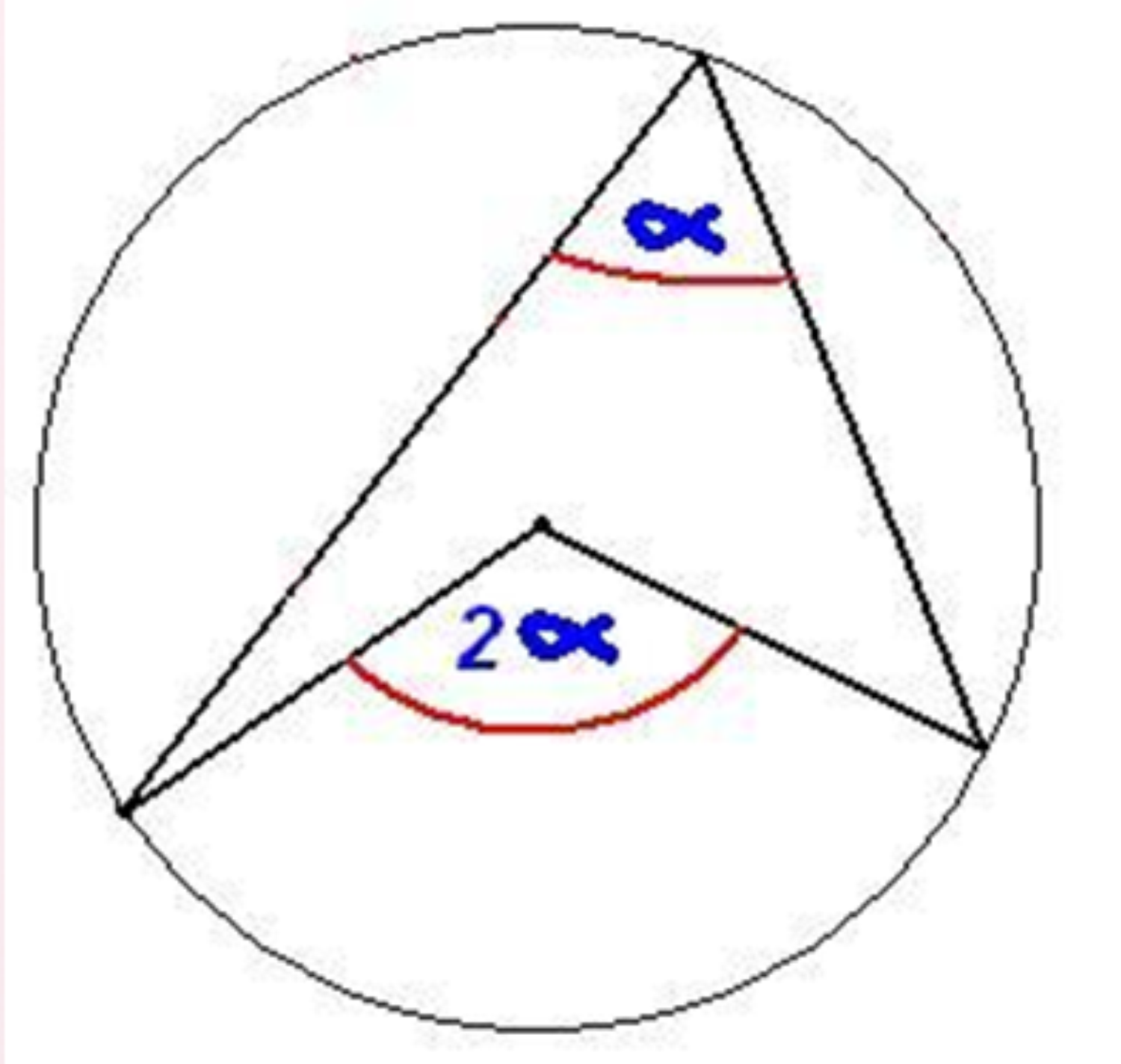 Un ángulo inscrito es la mitad de la medida de un ángulo central subtendido por el mismo arco . Un ángulo central es el doble de la medida de un ángulo inscrito subtendido por el mismo arco. COB ya que ambos están subtendidos por arc (CB).