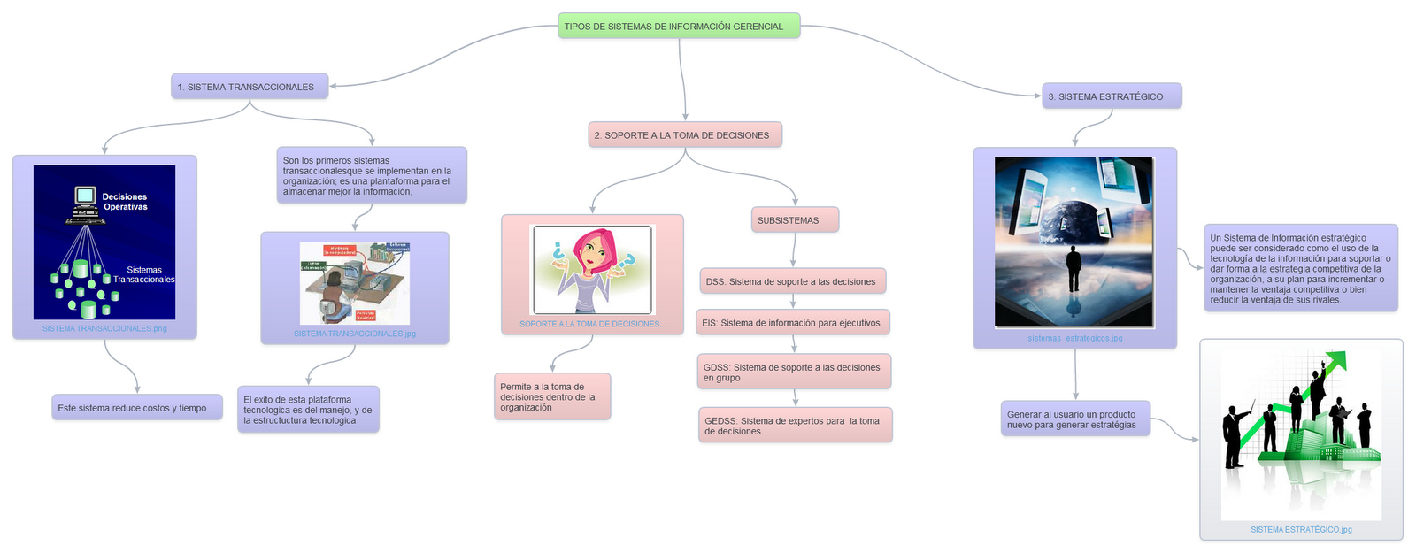 Los sistemas de información gerencial son soluciones administrativas mediante el uso de la tecnología de la información, y que colaboran como sistemas de apoyo con el proceso de toma de decisiones en los niveles de la organización más altos. Existen distintos tipos de sistemas de información que brindan ventajas competitivas, como los.