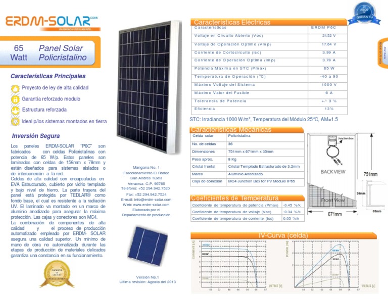 ficha tecnica 65 watt Panel Solar Policristalino.pdf Panel solar Lentes