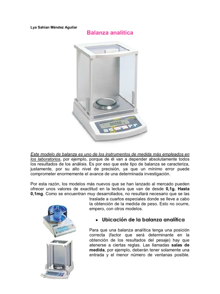 BALANZA ANALÍTICA: La balanza analítica es un tipo de báscula que mide la masa con un alto grado de precisión y exactitud. Se diferencia de las demás balanzas por contar con un rango de pesaje entre los 100 y los 300 g.