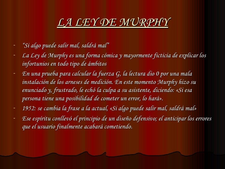 Origen de la ley de Murphy. Aunque existen diferentes versiones de cómo surgió la famosa ley, la más extendida cuenta que todo comenzó en 1949 con unas plan llamado MX100 destinado a probar la.