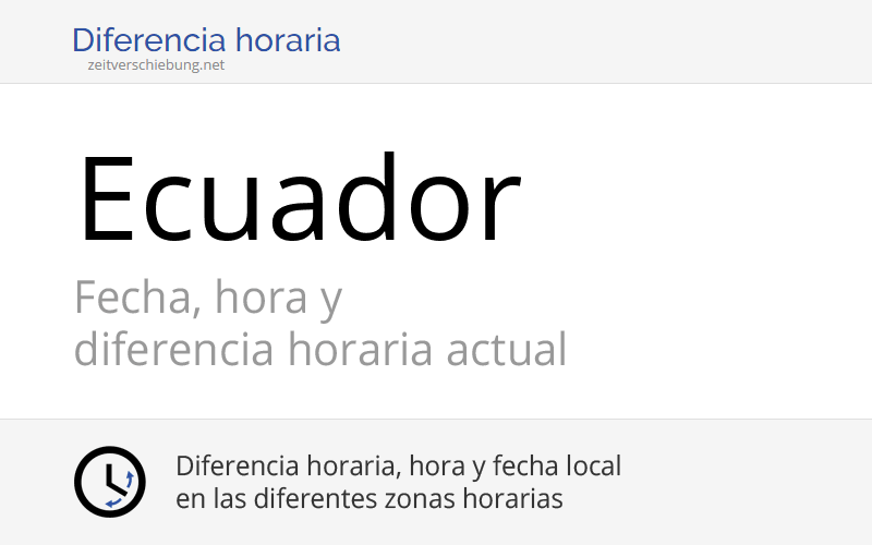 Diferencia horaria entre Ecuador y Estados Unidos de América(USA), incluyendo tabla de conversión de hora local por hora. Reloj Mundial. Conversor de horas. Ecuador to Estados Unidos de América(USA) 24 timezones tz. e.g. Argentina, Chile, República Popular de China. x; Reloj mundial; Hora de Europa;. Hora Ecuador y Estados Unidos de.