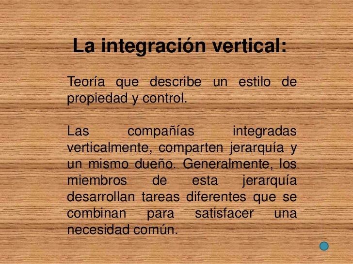 INTEGRACIÓN VERTICAL Ventajasydesventajasdelaintegracionvertical…