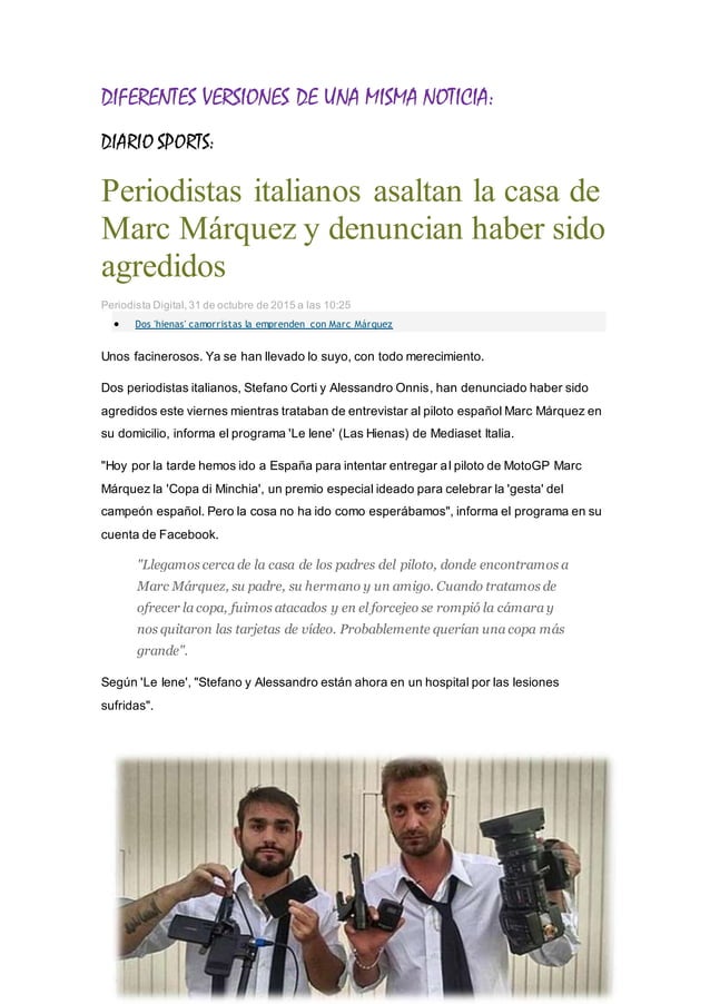 leer las 2 versiones de la noticia y reconocer su estructura y características Brainly.lat