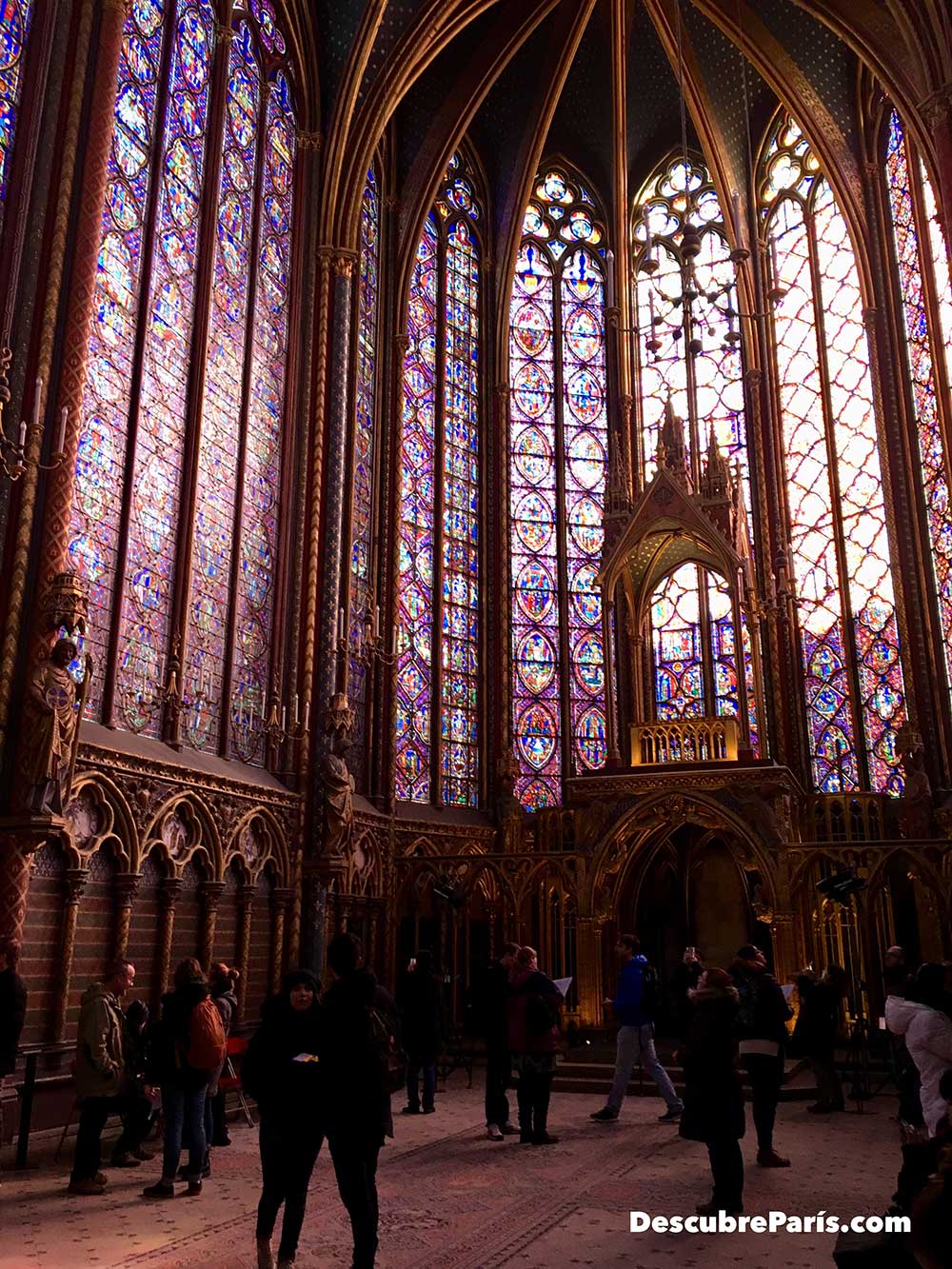 La Sainte-Chapelle es uno de los lugares más hermosos de París y vale la pena visitarla en cualquier momento del año. Su estilo gótico en suma con sus inmensos vitrales te dejarán encantado. Lo recomendable es visitar este lugar esta las 10:00 y 15:00 horas para poder verlo bien iluminado y deleitarnos con la iluminación que emiten las.