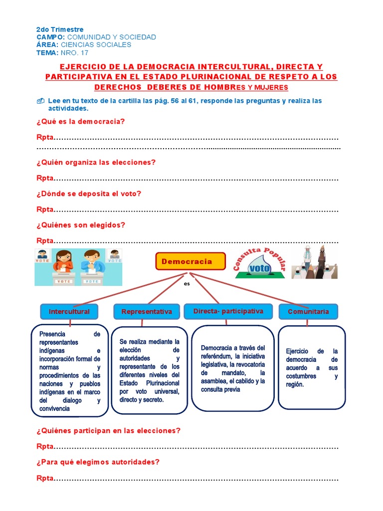Ficha Que Es Democracia Para Cuarto de Primaria Elecciones Sufragio