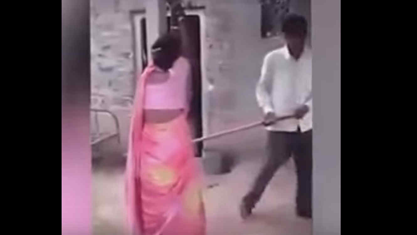 Un hombre castiga brutalmente a su esposa por serle infiel en la India (VIDEO)