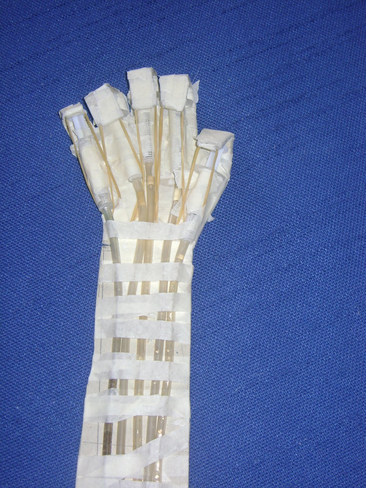 MANO HIDRÁULICA. Como aplicación a los conocimientos que intentamos introducir en ese tema, desarrollaremos en clase una mano articulada, realizada con cartón como material base. Esta mano contará con tantas articulaciones como presentan las manos humanas, contando con dedo pulgar prensil.
