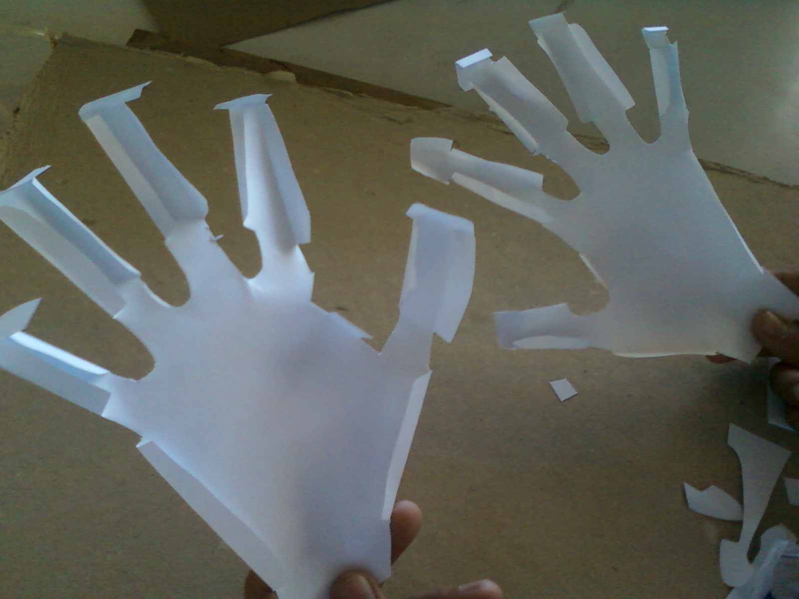 Procedimiento para Construir. En un pliego de cartón piedra marca el contorno de tu mano. Selecciona algunos puntos del contorno (cada 2 o 3 cm aprox) de la palma y únelos con una regla. La idea es que la palma de tu mano quede marcada en el cartón formada con rectas para hacer más fácil tu trabajo. Recorta la figura obtenida y guárdala.