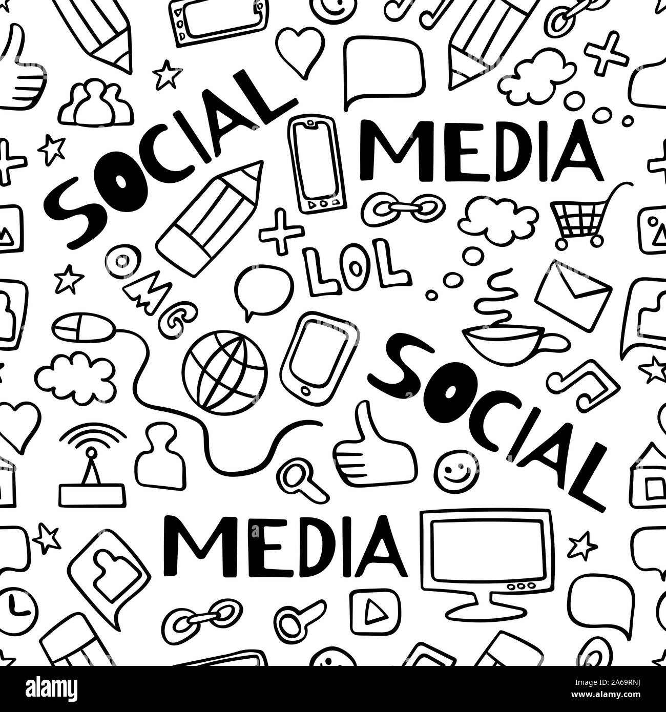 Patrón sin fisuras con los medios de comunicación social doodle elementos. Iconos dibujados a