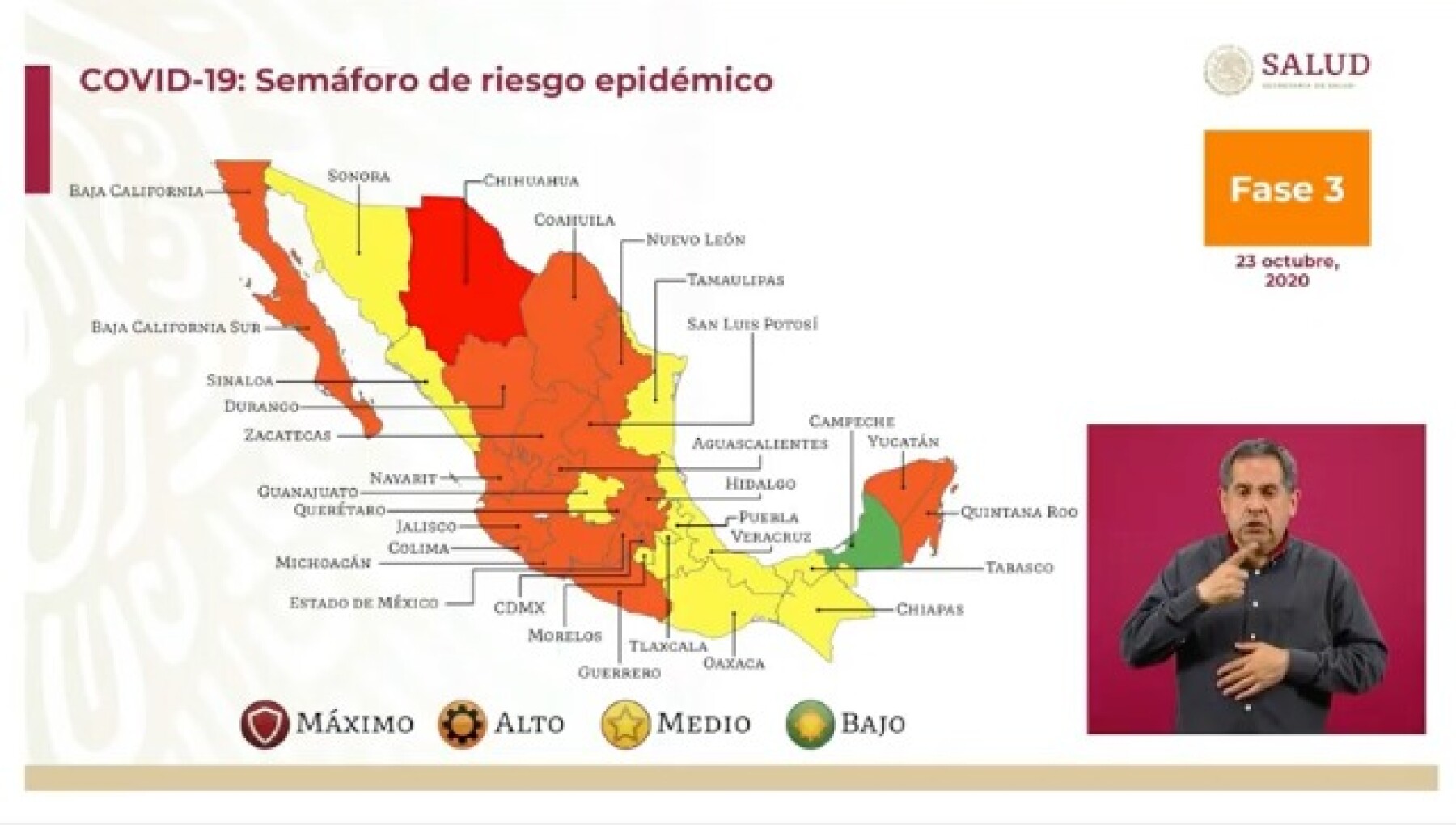 Semáforo COVID 1 estado regresa a rojo, 19 quedan en naranja y 11 en amarillo