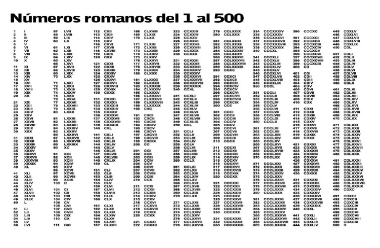 Numeros Romanos Del 1 Al 500