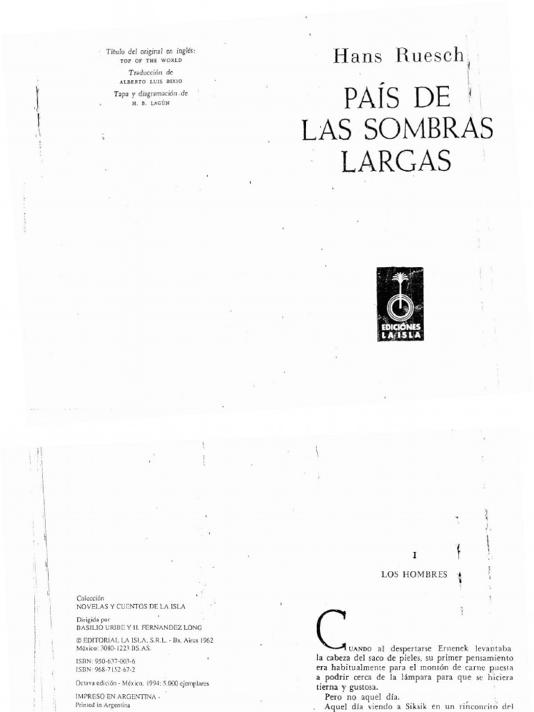 Title. El país de las sombras largasColección Novelas y cuentos de La IslaVolume 16 of Viento Simún. Author. Hans Ruesch. Translated by. Alberto Luís Bixio. Publisher. Ediciones del Viento, S.L., 2005. ISBN.