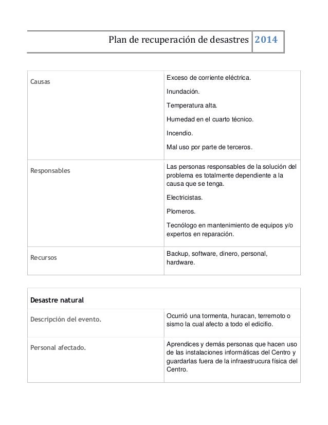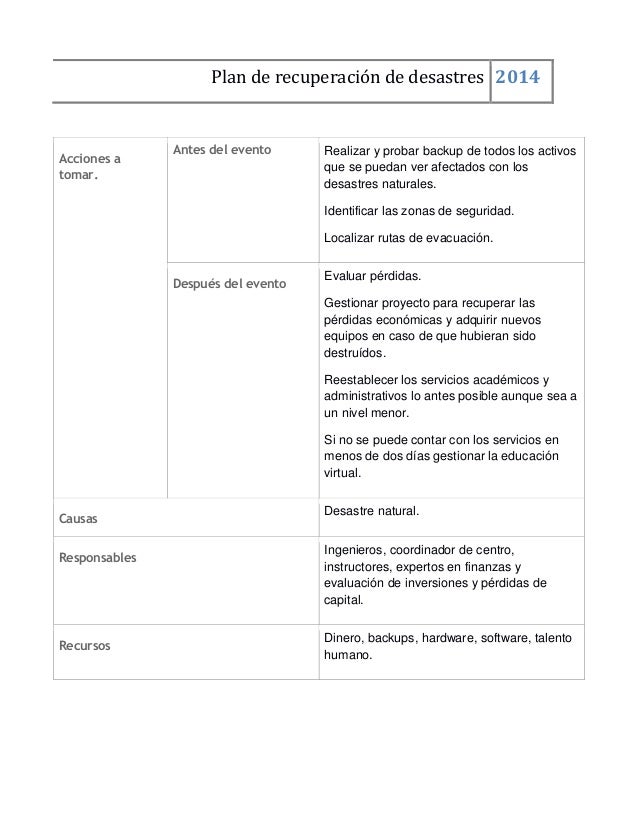 Plan de recuperacion de desastres