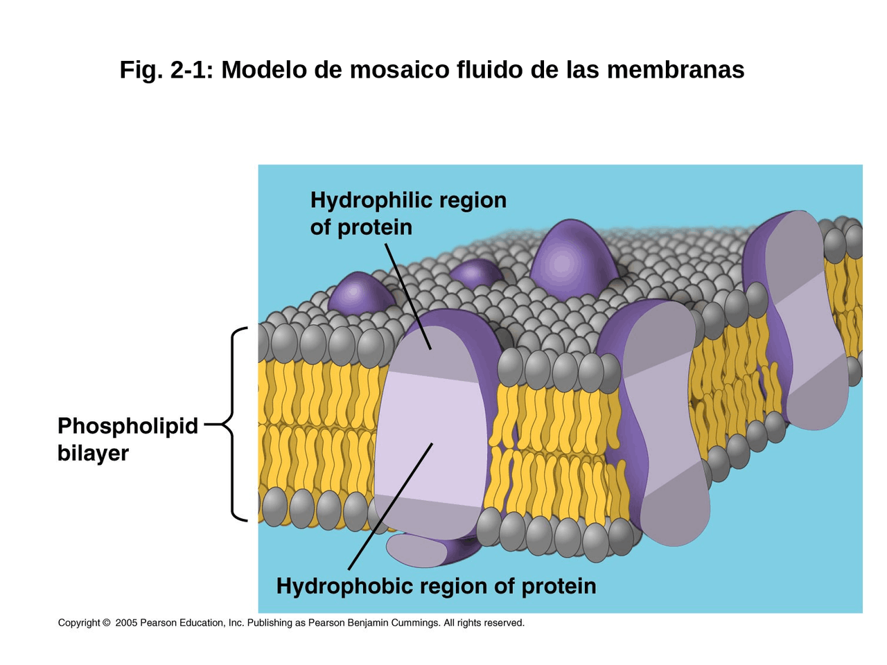 La estructura de la membrana plasmática. El modelo de mosaico fluido de Singer y Nicholson. Singer y Nicholson (1972), propusieron el modelo de mosaico fluido.Este modelo considera que: La membrana plasmática es como un mosaico fluido, donde los lípidos se disponen formando una bicapa de fosfolípidos, situados con sus cabezas hidrofílicas hacia el medio externo o hacia el citosol, y sus.