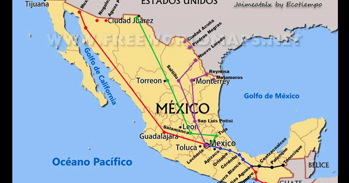Mapa De Mexico Con Sus Rutas Migratorias Hacia Estados Unidos Vecteur Premium