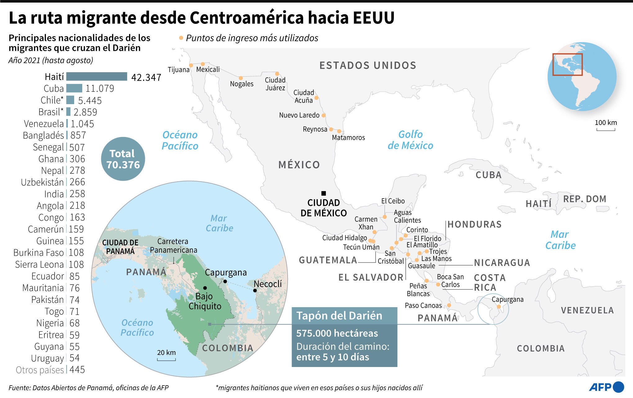 El mapa migratorio de Centroamérica muestra la complejidad de la región, con países de paso, emisores y receptores de migración a diferentes escalas. La larga ruta centroamericana se inicia en el tapón del Darién, una inmensa barrera natural que parte América en dos separando Colombia de Panamá, sin infraestructuras que la crucen.