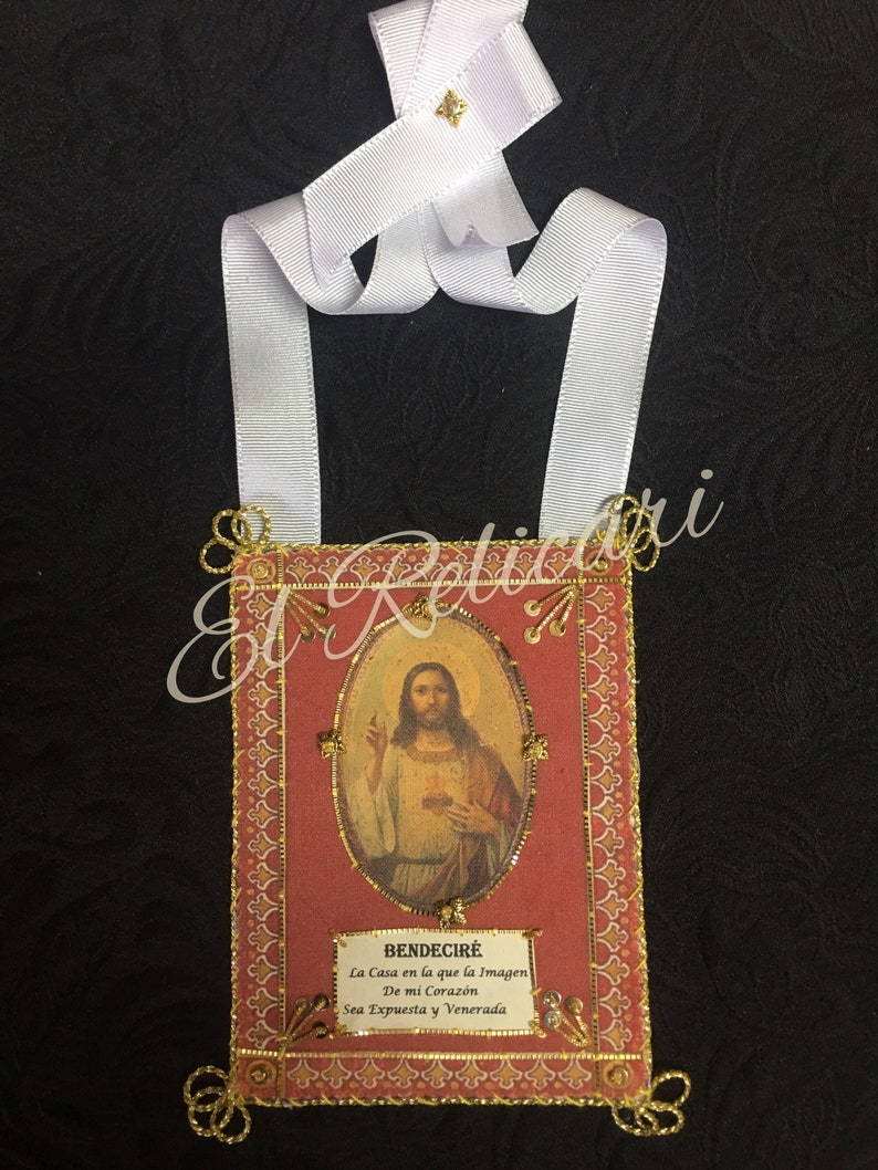 Escapulario Sagrado Corazon de Jesus. Protección del Hogar. Etsy