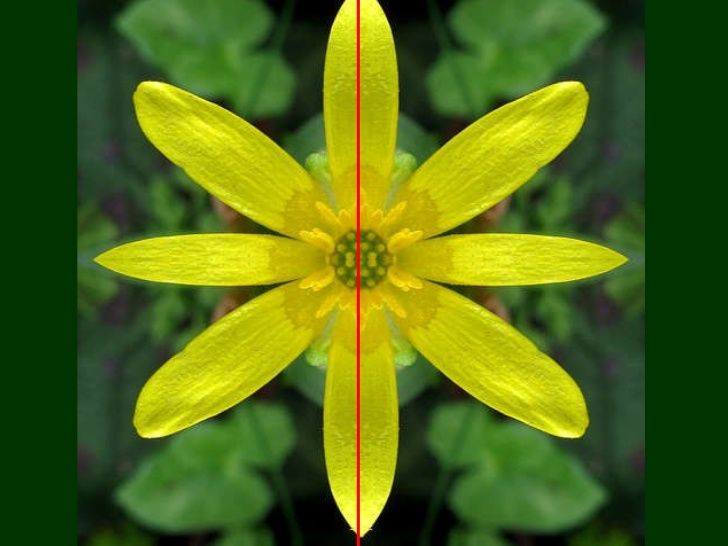 En la naturaleza hay ejemplos de simetría por doquier. La mayoría de los animales, desde insectos hasta mamíferos, incluidos los seres humanos, presentan simetría bilateral, es decir, si una línea vertical pasara por el centro del cuerpo, se dividiría en dos partes igual es que son reflejo mutuo (izquierda y derecha) (Foto 2). En el mundo vegetal, la mayoría de las plantas con flores.