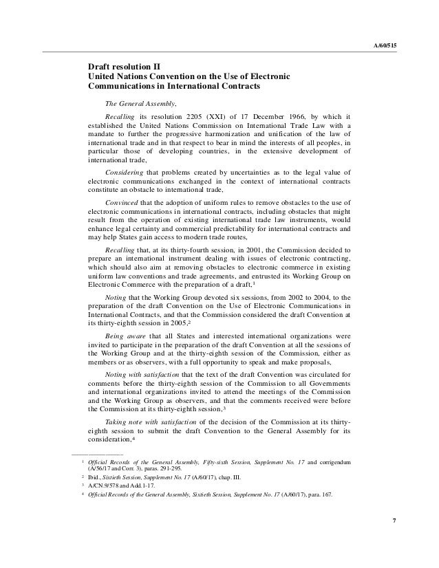 As a result, States developed 'a stand-alone convention. without creating any negative interference with the well-established regime of the United Nations Convention on Contracts for the International Sale of Goods.' 113 On this basis, in 2005, the UN General Assembly adopted the Convention on the Use of Electronic Communications in International Contracts as a free-standing convention. 114