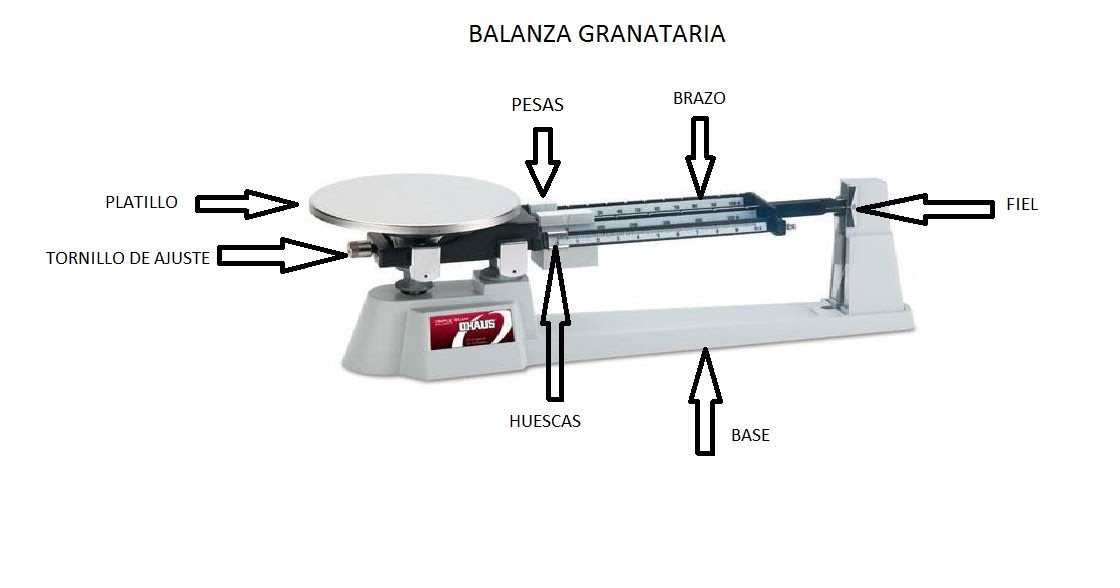 Se utiliza para medir la masa directamente de los objetos, encontrar la masa por diferencia de un líquido o gas y para medir la cantidad de una sustancia. Partes de la balanza granataria. La balanza granataria cuenta con varias partes: Base: Es la parte inferior del equilibrio de las tres vigas. Se utiliza para buscar el equilibrio.